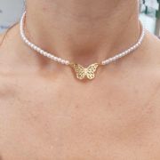 Chocker Dourada Pérolas com Borboleta Vazada