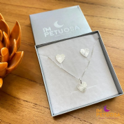Conjunto Prata 925 Coração Riscadinho