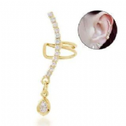 Piercing Fake Dourado com Strass e Pingente Gota Zircônia