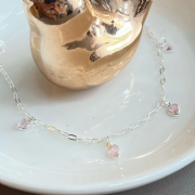 Tornozeleira Prata 925 Pingentes Corações Rosa