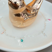 Tornozeleira Prata 925 Pingentes Gotas Coloridas