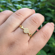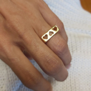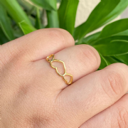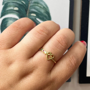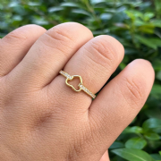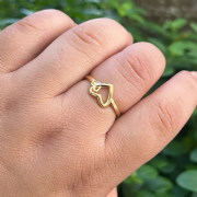 Anel Dourado Coraçãozinho Vazado Aste Cravejada