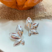 Brinco Banho de Prata Redondo Orgânico Frisado