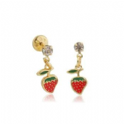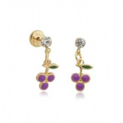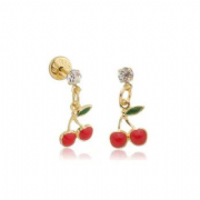 Brinco Dourado Infantil Cereja Tarraxa BB