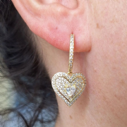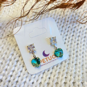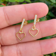 Brinco Dourado Zircônia Quadrada Pingente Coração Verde