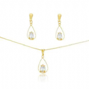Conjunto Dourado Gota ZircôniaSemijoia banhada a ouro
