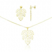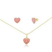Conjunto Dourado Coração Vazado LisoSemijoia banhada a ouro