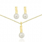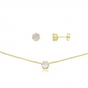 Conjunto Dourado Ponto de Luz 6mmSemijoia banhada a ouro