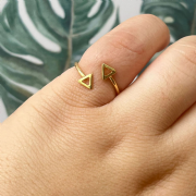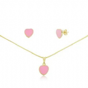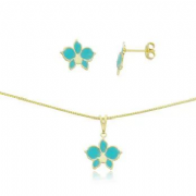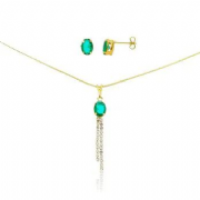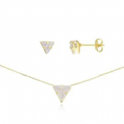 Conjunto Dourado Triângulo em ZircôniaSemijoia banhada a ouro