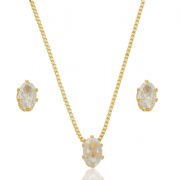 Conjunto Dourado Pedra Oval Pingente com Corrente em StrassSemijoia banhada a ouro