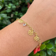 Pulseira Dourada Pingente Flor Vazada Cristal