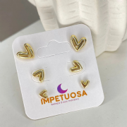 Trio Brinco Dourado Corações