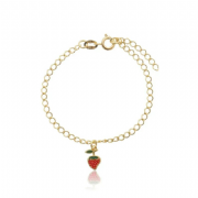 Pulseira Dourada Infantil Pingente Morango Resinado
