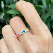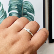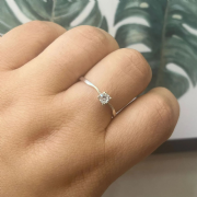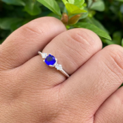 Anel Prata 925 Solitário Azul Ponto de Luz Laterais