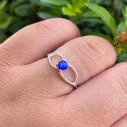 Anel Prata 925 Solitário Azul Laterais Vazadas