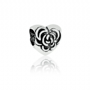 Berloque Prata 925 Passante Coração em Forma de Rosa
