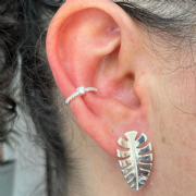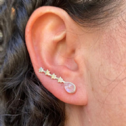 Brinco Prata 925 Ear Cuff Estrela Gota Pedra Natural