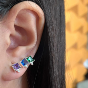 Brinco Prata 925 Ponto de Luz Color 4mm