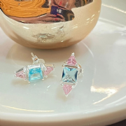 Brinco Prata 925 Zircônia Quadrada e Triangulos Colors