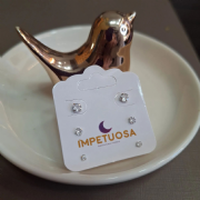 Brinco Prata 925 Trio Ponto de Luz 2/3/4mm